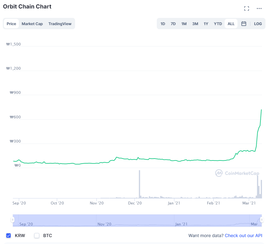 오르빗체인 코인 정보, ORC Coin, Orbit Chain, 다중 자산 크로스체인 플랫폼, 자산의 이동과 검증, 금융 프로젝트 개발 특화 코인, 카카오 클레이튼과 관련성, 상승이유, 특금법 때문에?