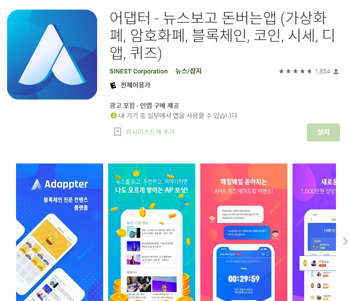 어댑터 토큰 코인 정보, ADP, Adappter Token Coin, AP, Activity Point란, 뉴스앱 이용하고 돈 벌기, 삼성 관련설, 삼성 묻은 어뎁터?