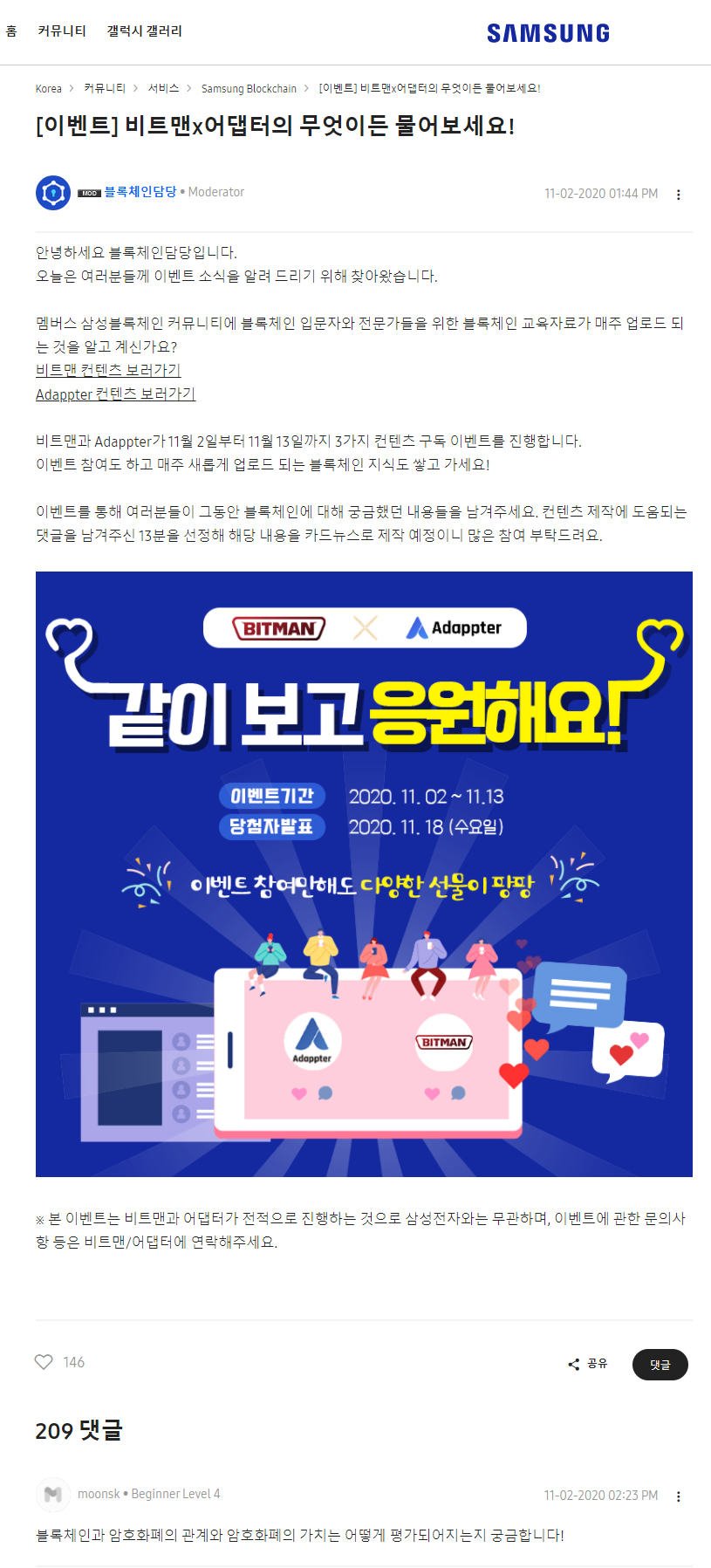 무슨 삼성 블록체인이랑 제휴해서 전문가 칼럼도 올라오고