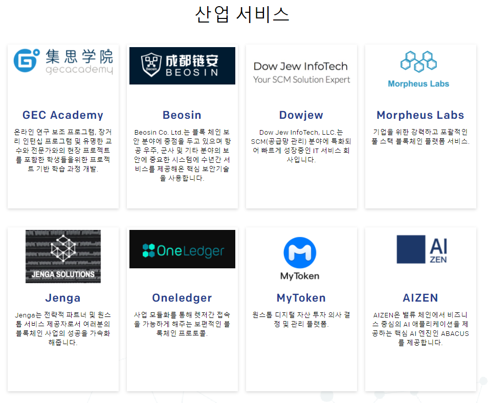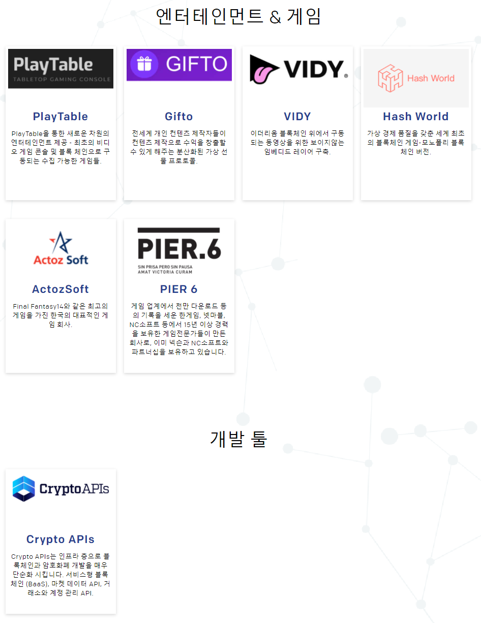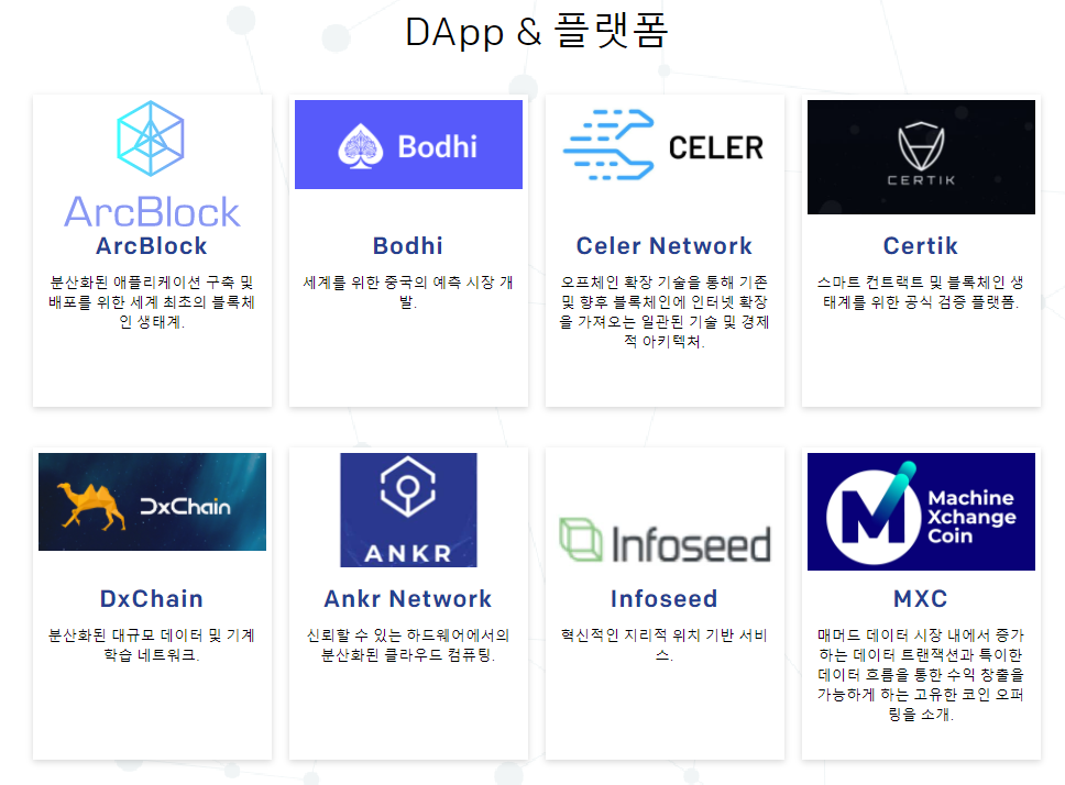 각종 다양한 시스템에 연동하도록 지원되는 서비스, 블록체인, 플랫폼 방식 지원 코인이다.