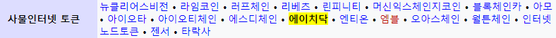 에이치닥은 사물인터넷 관련 토큰 분류로 빠지며, 관련 장르에는 다음과 같다.