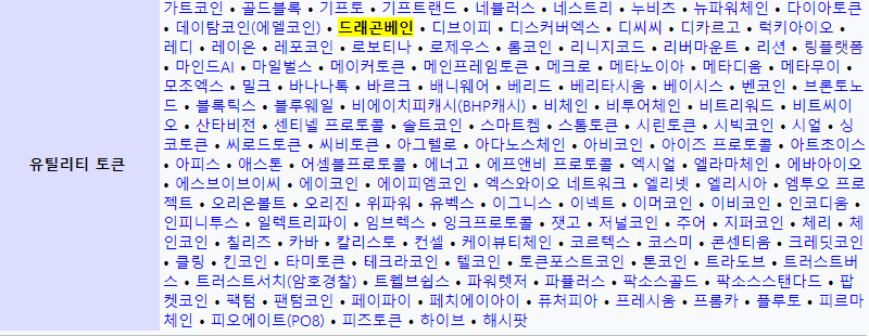 드래곤베인은 아래 코인들과 같이 유틸리티형 토큰에 포함됩니다.