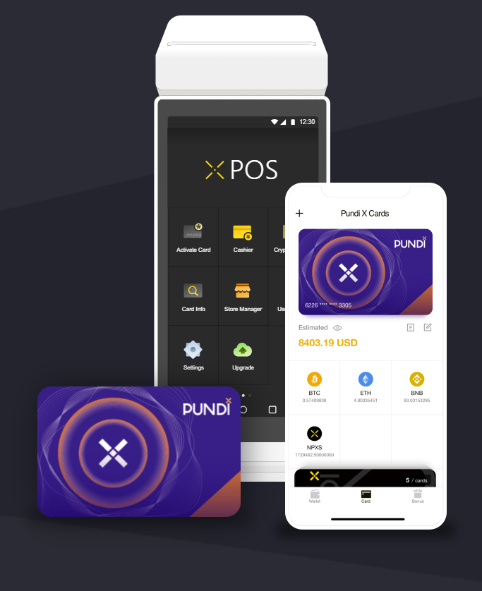 펀디엑스는 가상자산을 충전하고 사용할 수 있는 일반적인 지불 카드 크기의 XPASS 카드를 발행한다. XPASS는 두 개의 카드로 구성되어 있는데, 하나는 입·출금을 위한 개인 키 정보가 담겨 있고 다른 카드는 일상적인 구매용 지불결제에 사용된다.