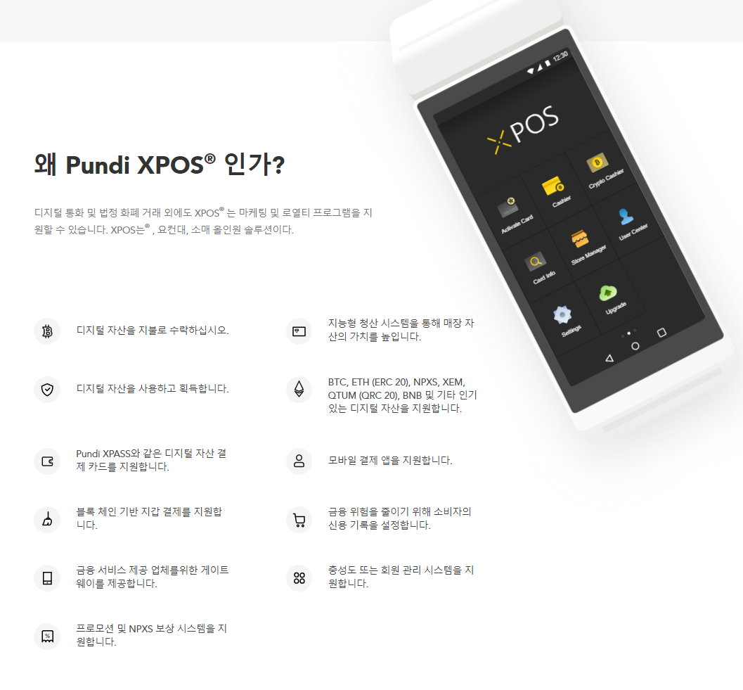펀디엑스 코인 NPXS Coin PUNDIX 정보, 가상화폐 결제시스템, 자체 포스기와 카드, 여러 가상화폐 결제 지원, 비트 이더, 퀀텀 가능, 상용화 수준의 포스기와지갑앱과 카드 XPass Card, 시총 1조, 중국진출, 우량코인