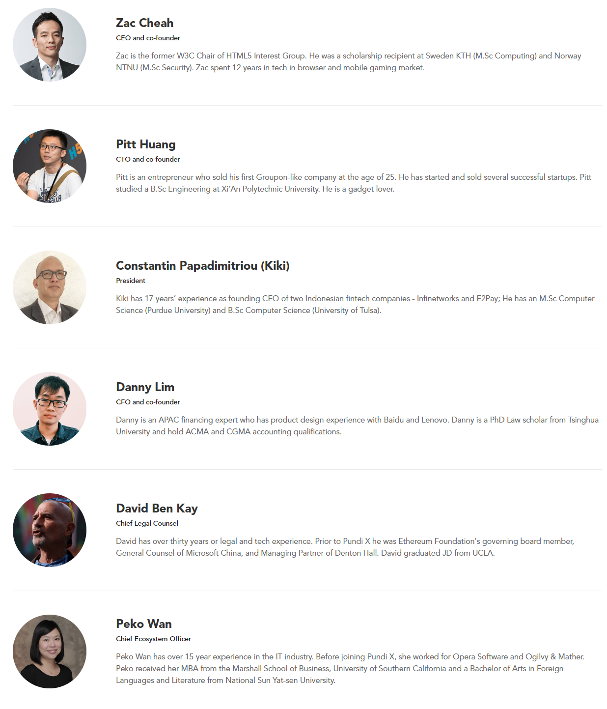 Pundi X의 창립자 Zac Cheah는 HTML 그룹 W3C의 전 위원장으로 활동했으며, 브라우저와 모바일 게임 시장에서 12년의 경력을 보유하고 있다.