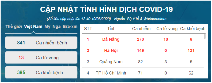 코로나19 : 사망자 2명 추가, 그 중 한 명은 33세 여자이다. 베트남 뉴스 번역(2020.08.10)